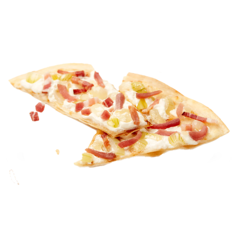 Flammkuchen sind hauchdünn ausgerollte Teigfladen, traditionell bestrichen mit cremigem Sauerrahm oder Crème fraîche und belegt mit milden Zwiebeln und herzhaftem Speck. Im heißen Ofen knusprig gebacken, überzeugt er durch seine feine Kruste und den ausgewogenen, würzigen Geschmack – eine echte Spezialität aus dem Elsass mit rustikalem Charme.